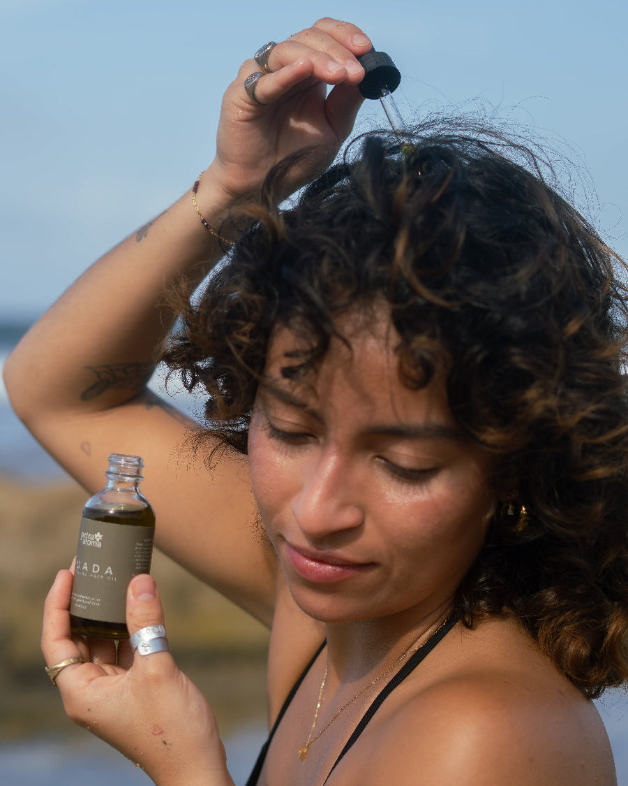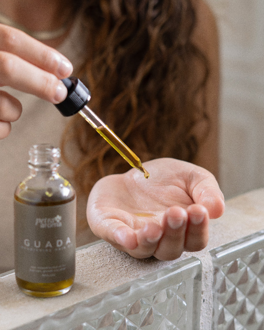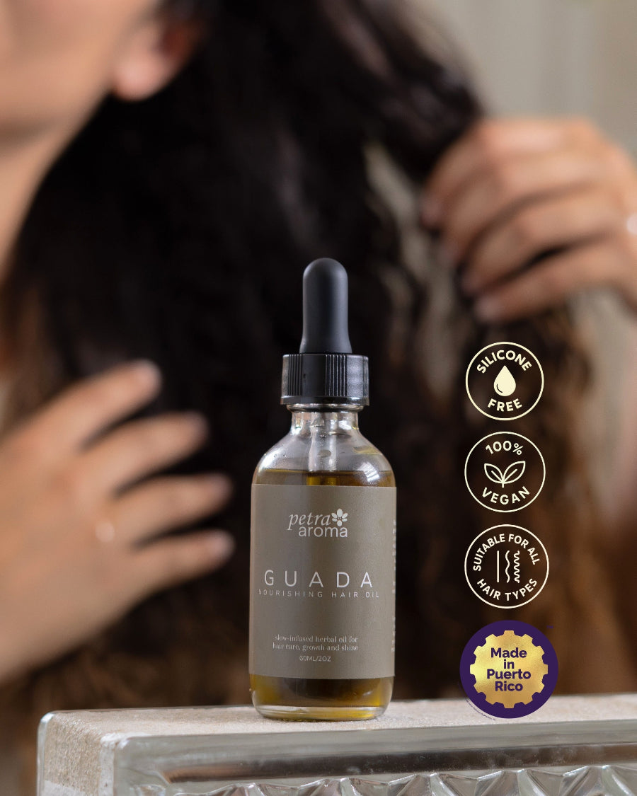 Guada es un aceite capilar a base de hierbas elaborado en el Caribe que ayuda a reducir la caída del cabello, fortalecer las hebras y calmar el cuero cabelludo.